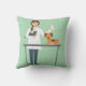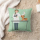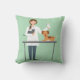 Veterinaire vrouw met dieren op groen kussen