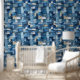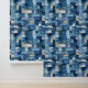 Vetgedrukte marineblauwe indigo collage papier tex behang