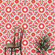 Deze schil- en plakbehang heeft een boeiend geometrisch patroon in Marokkaanse stijl dat traditie naadloos combineert met moderniteit. Het ontwerp is voorzien van een reeks onderling verbonden rode vormen, die elegante, symmetrische motieven vormen die doen denken aan de klassieke Marokkaanse kunst. Elk motief is samengesteld uit kleinere geometrische elementen, waardoor een dynamisch visueel ritme over het oppervlak ontstaat. Tegen de lichtgrijze achtergrond vallen de gewaagde rode figuren op, waardoor dit behang een trendy wandbekleding keuze is. De zelfklevende kwaliteit zorgt voor een eenvoudige toepassing, perfect voor het moeiteloos transformeren van elke kamer in een statement van persoonlijke stijl.