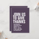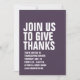 Met gewaagde witte typografie, wordt deze herfst paarse het diner van de Thanksgiving gemakkelijk aangepast en plaatst de toon voor een leuk en casual kalkoenfeest dag