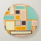 A vibrant abstract pattern with rectangles of varying sizes in teal, orange, peach, and cream tones, outlined in dark brown. Geometric and retro feel.
