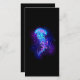Large, blue, artistically drawn, glowing, bright jellyfish, with long tentacles on black background with purple bioluminescence. Luminous jellyfish.