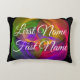 This geometric accent pillow is a parody on our names and showcases an alternative possibility of what our name could look like with a few minor changes. This product features front side, first and last name text customization. On the back side of the pillow, switch the first letter or couple of letters of your front and last names to create the interesting alternative. Have fun with this bright colorful glossy geometric theme design. Combine with the in series throw and round pillows to complete the set.