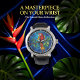 Illuminate your space with the dazzling beauty of this decorative wall clock, showcasing a magnificent red parrot rendered in the captivating style of stained glass. The artistic design features the vibrant bird perched elegantly on a leafy branch, its intricate pattern glowing against a serene blue background. This unique timepiece is more than a way to tell time; it's a stunning art piece that brings the wild beauty of the jungle into your home. With its vivid colors and detailed craftsmanship, this ornamental clock offers a modern yet timeless appeal, making it a perfect gift and a focal point for any room with its bright, tropical charm.
