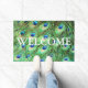 Vibrant Modern Peacock Feathers Welkom Deurmat