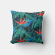 Double-sided throw pillow featuring vibrant tropical leaves and orange flowers on a dark background. The design conveys a lively, exotic feel.