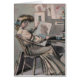 Een mooie post-Victoriaans-uitzendster in haar artiestatelier, die over haar eigen portret kijkt, met haar schilderwerk en tekenbenodigdheden in de buurt. Deze charmante illustratie herinnert ons heel goed aan de grote, geslepen tijd. Een mooie wending van de eeuwse nostalgie die bijzonder geschikt is voor vrouw kunstenaars of andere creatieve vrouwen en voor hoornaars, terug naar de goede oude dagen van het jaar. Uit een authentieke afbeelding uit 1904 door John Rea Neill.