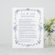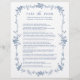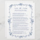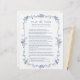 Elegant Victoriaans Frans blauw bloemenspel 'Pass the Poem' vrijgezellenfeest met aangepaste tekst op de achterkant. Voor meer geavanceerde aanpassing van dit ontwerp, klikt u op de BUTTON DESIGN TOOL hierboven!