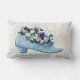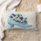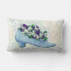Een charmante blauwe Victoriaans schoen gevuld met bloemen en bloemige achtergrond.