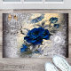 Mooie, , donkerblauwe rozen bloemstukken op krantenprint, met een faux parelbroche en ketting, vogelkooi met gele strik voor creëer een luxe, extravagante, chique stijl voor een stijlvolle deur.