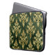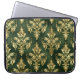 Dit product heeft een ingewikkeld en symmetrisch damaspatroon met gouden sierlijke design tegen een rijke smaragdgroene achtergrond. De bloemen lijken op klassieke barokke en rococo motieven, waardoor het een gevoel van weelde en sophisticatie geeft. De gouden elementen hebben een metallic glans, waardoor een luxe contrast ontstaat tegen de diepgroene achtergrond