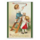 /Victoriaans kerstwenskaart. Schattige kinderen schilderen een kerstbericht. Vrolijk kerstfeest! Moge kerst vol plezier zijn, en de Kerstman brengt je veel een schat!
