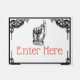 De klassieke vinger wijzende hand inkt schets. De hand weet wat te doen, en op deze deurmat zegt hij ons "Enter Here" in het rood. U kunt het personaliseren naar uw eigen smaak. Ik heb wat Victoriaans sierstrips toegevoegd voor die toegevoegde touch. Een leuke print die iedereen zal herkennen. Gedaan in zwart, rood en wit.