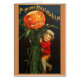 /Victoriaans Halowe'en wenskaart. Schattig jongetje met een pijp die Jack-o-Lantern rokt! Een Merry Hwe'en!