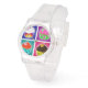 Een super schattig horloge met vier schattige, kleurrijke cupcakes versierd met regenbogen, bloemen, harten, vlinders, eenhoorns en meer, elk met een lichte achtergrond. Het is een perfect cadeau voor een meisje. De kunst is van het enorm populaire spel "My Cupcake Bakery".