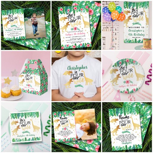 Four Ever Wild Dinosaur 4th Birthday PartyOntworpen door Lizzy Fox