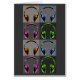 Vier koptelefoons van de Kunst van de Pop, elk paar hoofdtelefoons wordt getoond binnen een vierkant, elk een verschillende schaduw van grijs. De hoofdtelefoon bevindt zich in retroflecten van oranje, blauw, roze en groen met zwarte schaduwen die de vormen en contouren van de hoofdtelefoon definiëren. Het design van de vier Pop Art Headphones heeft een retro, ouderwetse look en is ideaal voor degenen die van muziek houden, die liever naar hun muziek luisteren zonder inmenging van buitenaf en DJ's die graag hun vinyl draaien. Bezoek de ElectricPopSpot shop en doorblader al onze geweldige muziek met de titel pop art design! ElectricPopSpot - Pop cultuur omzetten in Pop kunst!