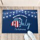 Welkom elke gast van de vierde viering van juli met dit opvallende, grafische, patriottische, gepersonaliseerde, vierde van juli Onafhankelijkheidsdag doormat. Vet land, Robuuste "4" Amerikaanse vlag, witte vettige typografie met babyblauw en rood handgeschreven script, samen met feestelijke snaarlichten, bedekken een blauwe achtergrond voor de marine Aanpassen met uw familienaam of andere kopie. Kies uit twee formaten: 18 x 24 en 24 x 36 inch. Zeker om stijlvolle lol toe te voegen aan je grote zomerevenement! U kunt dit aangepaste model eenvoudig aanpassen aan het type jouw naam. Stuur me alstublieft alle vragen of verzoeken.