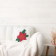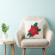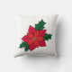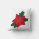 Vierkant werpkussen met rode oranje kerstpunsettia, met donkergroene bladeren en een zwarte omtrek. Dit ontwerp wordt aan beide zijden van het kussen toegevoegd
