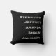 This simple, minimalist square throw pillow, with room for five names, is a wonderful gift for a new home or housewarming party - or for yourself, of course! Great keepsake gift for new parents or grandparents. It is black and white, but easy to change colors. Back is solid black. All Rights Reserved © 2024 Alan & Marcia Socolik