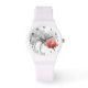 Witte horloge met vier witte rozen en één perachy roze roos. Dit horloge heeft de aantallen die aan de voorzijde worden toegevoegd. Heel horloge voor een geschenk of voor jezelf.
