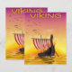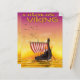 Viking beugschip zeilt op de oceaan of in het noorden van zee tijdens een prachtige zonsondergang.