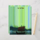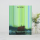 Een licht gestileerd afbeelding van een Vikinglongship dat 's nachts onder het noorderlicht vaart daar een paar ijsbergen; het grootste deel van de bemanning slaapt. Aanpassen door uw eigen tekst toe te voegen.