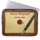 Envelope Vintage - © Sunny Mars Designs. This beautiful elegant custom 13" laptop sleeve is fully customizable and features an illustration of an old vintage style envelope and a red wax seal with an ink fountain pen against a wooden background. Perfect for freelance writers, editors or proofreaders. Personalize it by adding your own name and title or other text to it.