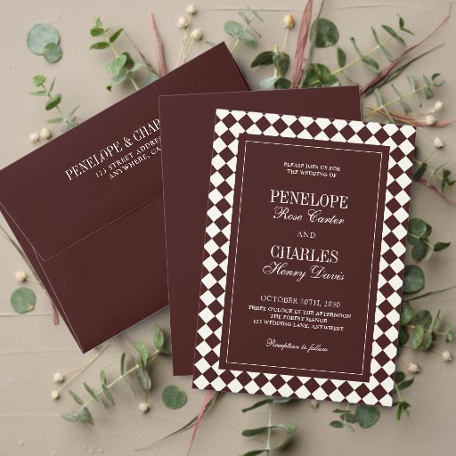 Vintage Burgundy & Ivory Checkered Wedding SuiteOntworpen door Uneza K