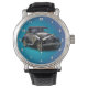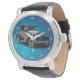 Een foto van een klassieke auto op een blauwe gradiëntachtergrond.