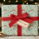 This design features a whimsical, vintage-inspired holiday motif. The pale blue-green background is adorned with scattered golden stars and twinkling flecks. The primary elements are large glittery golden crescent moon and a stylized, red and white striped candy canes that function as a slide. Small angels, which are wearing white, are depicted in two poses: one angel sits on the tip of the crescent moon, and a group of three angels are sitting on the candy cane, creating a playful and nostalgic texture suitable for wrapping paper or fabric.