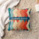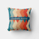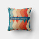 Het ontwerp toont een retro-geïnspireerd geometrisch patroon dat doet denken aan de jaren 60, met een gedurfde reeks langwerpige diamantvormen in een palet van marineblauw, koraalrood, blauwgroen, beige en crème. Deze diamanten zijn gerangschikt in een symmetrische, in elkaar grijpende mode die creëer een opvallende visuele impact heeft door zowel vorm als kleurcontrast. Elke diamantvorm is stevig gevuld met een van deze kleuren, waardoor een vet en levendig contrast ontstaat dat zowel opvallend als elegant is. De repetitieve en hoekige natuur van het patroon geeft een gevoel van ritme en beweging, terwijl de kleuren worden gekozen om warmte en diepte op te roepen. Dit ontwerp zou een stijlvolle en moderne touch toevoegen aan elk interieur, waardoor het een uitstekende keuze is voor een decoratief kussen voor uw huis.