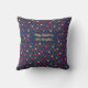 Feestelijke vakantiedecoratie waar de dieprode, rijke blauwe en glinsterende gouden en groene kerstversieringen een betoverend patroon creëer. De rode ornamenten: bellen en bellen, met hun levendige tint, dienen als brandpunten, om de aandacht te vestigen op belangrijke gebieden van het arrangement. Als aanvulling op de vetgedrukte rode ornamenten zijn de sierlijke blauwe snuisterijen en klokken, die een vleugje verfijning en diepgang toevoegen aan het kerstpatroon. Hun koele, kalmerende tonen creëer vormen een prachtig contrast met het vurige rood, wat de visuele aantrekkingskracht van het display vergroot. Groene kerstbomen met gouden slingers brengen veel feestvreugde. Terwijl de glinsterende gouden sterren zorgen voor een vleugje weelde en luxe aan het arrangement. Tussen de ornamenten zit een reeks stralende rode parels, delicaat gedrapeerd om een vleugje glamour en elegantie toe te voegen. Samen met de rode, blauwe en gouden ornamenten, samen met de reeks rode parels, creëer een prachtig vakantiepatroon dat de sfeer van het seizoen in dit vakantiekussen met gepersonaliseerde begroeting vastlegt.