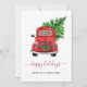 Vintage kerstboomwagen Verplaatsde feestdag Verplaatsende aankondiging Briefkaart Verdroogde kerstboom