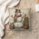 Een ontwerp van sneeuwpop decoreert dit warme en gezellige kerstkussen.