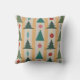 Deze gooiende kussen hebben een modern design van kerstbomen en ornamenten uit de midden van de eeuw, dat op een land met een gouden en zilveren achtergrond ligt.