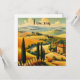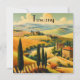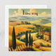 vintage reizen poster van het platteland in Toscane Italië met cipressen, glooiende gouden heuvels en afgelegen huizen