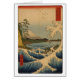 De Japanse druk ukiyo-E toont een uitzicht van Onderstel Fuji van Punt Satta in de Baai Suruga, met het breken van golven in de voorgrond. Titel: Het zee van Satta, Kunstenaar (Vertaalde) Suruga: Ando, Jaar Hiroshige: 1859