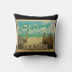 Deze Greetings From Seaside briefkaart design is voorzien van een zandstrand met een prachtig turquoise oceaanwater en boven het zee, een blauwe hemel met blauw witte wolken. In de klassieke reisstijl.