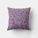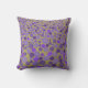 Een koel en funky abstract kussen met verschillende afmetingen van cirkels die een veld vol met wilde bloemen vertegenwoordigen. De achtergrond is kleine stippen in schaduwen van geel en werd gecreeerd gebruikend de pointillisme techniek. De voorgrond is gevuld met grotere cirkels in een verscheidenheid aan paars.