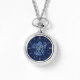 Horloge met het zonneteken voor Maagd in zacht zilverblauw, bedekt met de sterren van het sterrenbeeld, tegen een donkerblauwe, sterrenhemel achtergrond