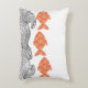 Vissen en golven gooien kussen. De vissen zijn gemaakt in een zacht terracotta sinaasappel en versierd met een delicaat bloemmotief, wat een grillige, Japans geïnspireerde toets toevoegt. De golven hieronder zijn geïllustreerd met fijne zwarte lijnen in een traditionele houtsnede stijl,