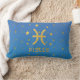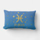 Aangepast lumbaal kussen voor "Vissen" met gouden sterrenbeeld en gouden sterren, met blauwe gradiënt achtergrond.