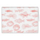Met de hand getekend vectorpatroon met verschillende vissen in levende koraalkleur en witte achtergrond.