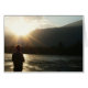 Deze prachtige kleurenfoto toont het wonder van de grote buitenshuis. Een man staat langs de rand van de rivier met zijn visstaaf in de reflecterende wateren, verlicht door een briljante zonnestraal en lichtstralen. Pas om het even welk punt met uw eigen religieuze, motivatie, inspirerend, speciale gelegenheid of algemene visserijverwante tekst aan.