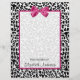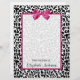 Een trendy zwart-witte luipaard die 8,5 x 11 inch briefhoofdpapier drukt met een levendig donkerroze lint gebonden aan een schattige meisjes buis. Pas dit stijlvolle diermodel aan door de naam van je tienermeisje toe te voegen. Vlak gedrukt afbeelding, geen echt lint.