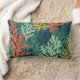 Helder op koraal geïnspireerd gebladerte in rode, gele en lichtgroene tinten over een donkerder groene zee-achtige achtergrond. Zeer levendig en marien thema.