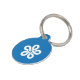 ID-tag van het pet met een ontwerp met de vlag van de prefectuur Fukuoka in Japan (福 県, Fukuoka-ken), een blauwe vlag met een wit symbool