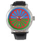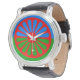 Toon uw trots en verbondenheid met het Romaanse erfgoed met dit horloge met de internationale vlag van het Romaanse volk (O romanko flako). De vlag werd aangenomen op het eerste Wereldcongres van de Roma in 1971 en symboliseert de eenheid en cultuur van het Roma-volk, historisch bekend als zigeuners. De ontwerpelementen hebben een diepe betekenis: de blauwe streep vertegenwoordigt de hemelen, spiritualiteit en eeuwige waarden. De groene streep symboliseert de aarde, de natuur en de voorspoed van het land. De rode 16-spaaks Dharmachakra (wiel) in het midden erkent de historische oorsprong van de Roma in India en vertegenwoordigt de traditionele nomadische reis (Vardo of wagen) en constante beweging / vooruitgang. Dit horloge is een opvallend accessoire dat de Roma-identiteit, cultuur en geschiedenis eert, waardoor het een betekenisvol item is voor leden van de gemeenschap of voor degenen die de rechten en erkenning van de Roma ondersteunen.