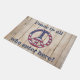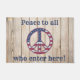 Deze patriottische deurstap kenmerkt de Amerikaanse vlag in een vredesteken. Er staat: "Vrede voor iedereen die hier binnenkomt!" en het is tegen een rustige oude schuur-bordachtergrond. Er zijn ook vlaggen in de winkel.